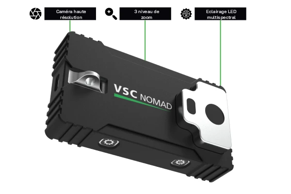 Le stockage interne de 8 Go et la connexion USB 3.0 facilitent l’enregistrement et le transfert des preuves visuelles. Léger et robuste, il s’adapte parfaitement aux situations de contrôle en extérieur comme en déplacement. Pensé pour les forces de l’ordre, les services frontaliers et les experts en fraude documentaire, il améliore considérablement la fiabilité des vérifications. En réunissant portabilité, performance et simplicité d’utilisation, le VSC NOMAD devient un outil indispensable pour la lutte contre la falsification et l’usurpation d’identité.